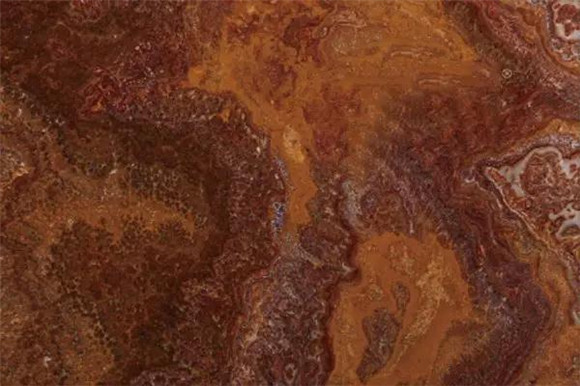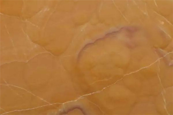 特征:底色為金黃色,版面帶有較多的細小白線,紅色朵狀紋理及黑色紋理,局部帶有大塊白色、黑色疤紋。裂紋較少,無孔洞,石質細膩,通透性強。