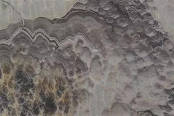 特征:底色分為白底、黃底,現較多為黃底,即黃褐色底色,版面帶有灰黑 色朵狀紋理交錯,呈山水畫狀分布,局部帶有褐色斑紋,黑褐色根線。裂紋較少,無孔洞,石質較為細膩,通透性好。