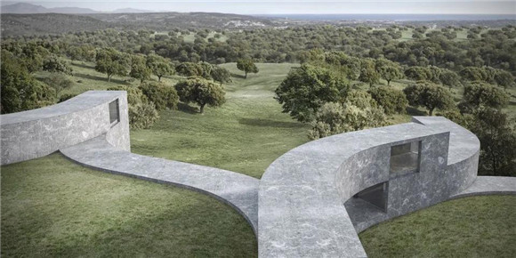 (Fran Silvestre Arquitectos在西班牙設計的條形元素住宅,灰色的色彩,以及色彩所營造出的建筑融于地形的自然原始感受,是人們看到該建筑時最強烈的視覺效果)