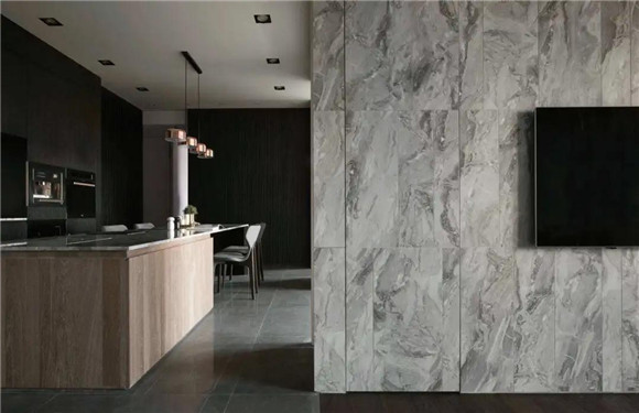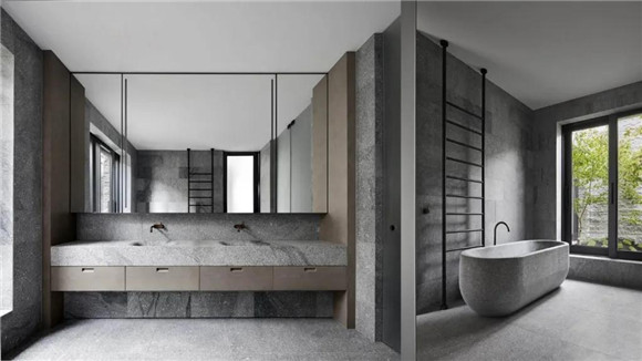 (如果要在室內大面積使用花崗巖元素,灰白色系花崗巖往往是不錯的選擇。因為灰色有很百搭的特性,而花崗巖均勻顆粒感不僅不會令空間凌亂,還可以賦予空間一種微妙的動感)