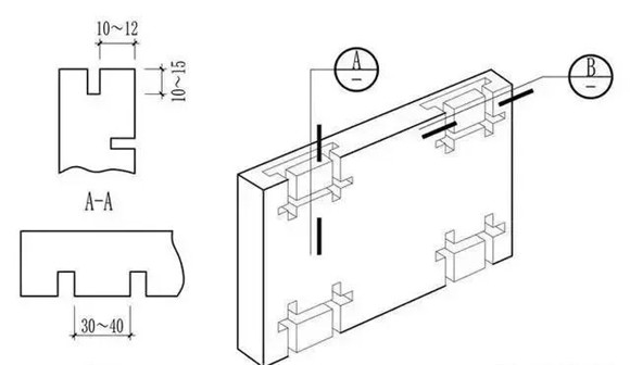 ② 綁扎板材:用切割機(jī)在板材背面分別開(kāi)四角開(kāi)槽,穿插和固定好銅絲或不銹鋼絲。