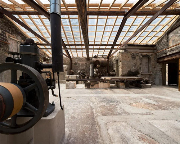 石材http://www.stonebuy.com/的機(jī)器也已經(jīng)被修復(fù)。在大理石營房的內(nèi)部,一臺(tái)1925年的古老的Hatz柴油發(fā)動(dòng)機(jī)驅(qū)動(dòng)著一個(gè)飛輪,該飛輪又反過來激活了螺旋電線,電線通過一個(gè)垂直的底座支架和飛輪系統(tǒng)與外部空間聯(lián)系起來,向人們演示用螺旋電線切割大理石的技術(shù)。