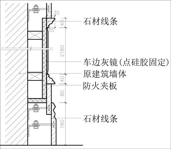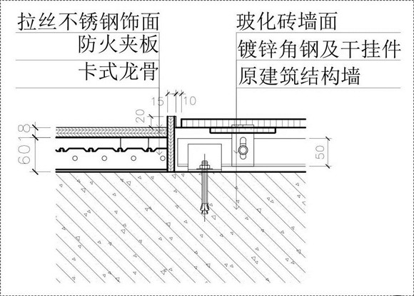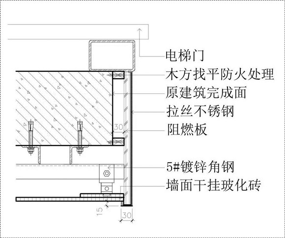 1.鍍鋅槽鋼、鍍鋅角鐵及配件,選用指定墻磚干掛,木龍骨、防火夾板