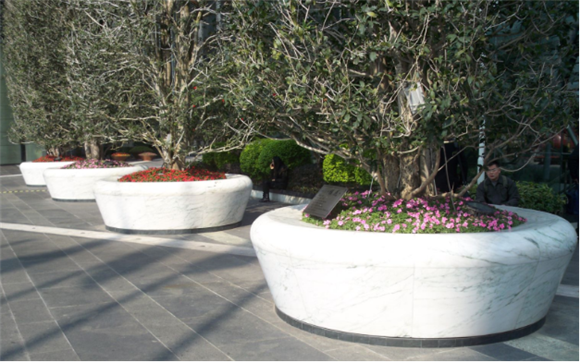 石材http://www.stonebuy.com/制作的花盆將桂花樹襯托得更加迷人、高大。