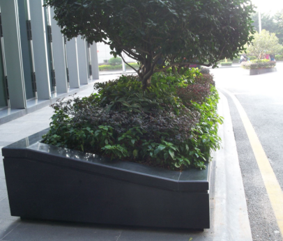 圖14幾塊石板拼接而成的條形花盆,簡潔而閃亮,茂密的花草和樹木打造了一個小小的環境藝術世界,給繁忙、喧囂的大城市帶去一片寧靜和溫馨。