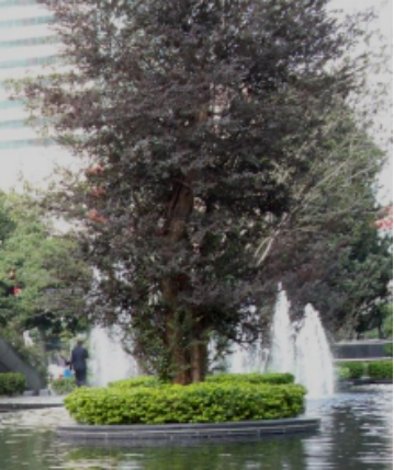 圖19深圳證券交易所附近的水景花池,高聳的樹木從水池中拔地而起,后面沖天的噴泉營造的環境氣氛猶如一個神話世界,虛幻而使人愜意。