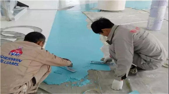 ▲現場澆筑水磨石