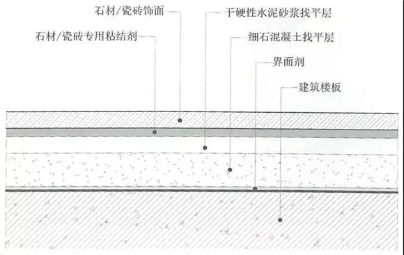 (2)找平層是用細石混凝土或者抗裂砂漿為填充物進行找平,找平層一般為50mm或40mm。