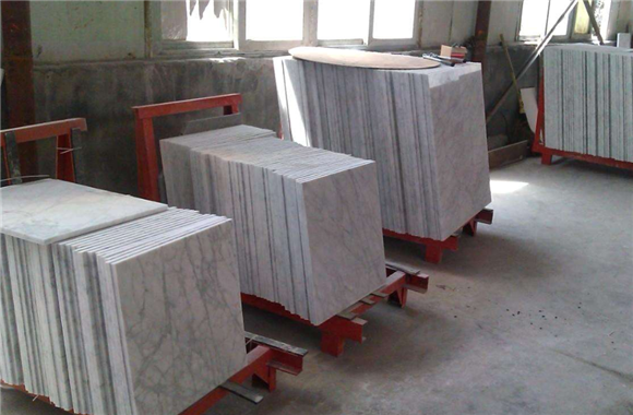 1、大理石板塊進場后應堆放在室內,側立堆放,底下應加墊木方。并詳細核對品種、規格、數量、質量等是否符合設計要求,有裂紋、缺棱掉角的不得使用。