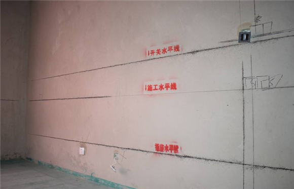 在房間的主要部位彈出互相垂直的控制十字線,用以檢查和控制大理石板塊的位置,十字線可以彈在混凝土墊層上,并引至墻面底部。