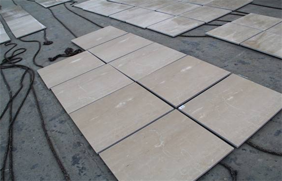 在房內的兩個相互垂直的方向,鋪兩條干砂,其寬度大于板塊,厚度不小于3cm。根據圖紙要求把大理石板塊排好,以便檢查板塊之間的縫隙 ,核對板塊與墻面、柱、洞口等的相對位置。
