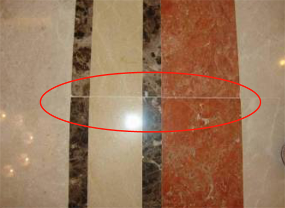 1、大理石、花崗石面層的表面應潔凈、平整、無磨痕,且應圖案清晰、色澤一致、接縫均勻、周邊順直、鑲嵌正確、板塊無裂紋、掉角、缺楞等缺陷。
