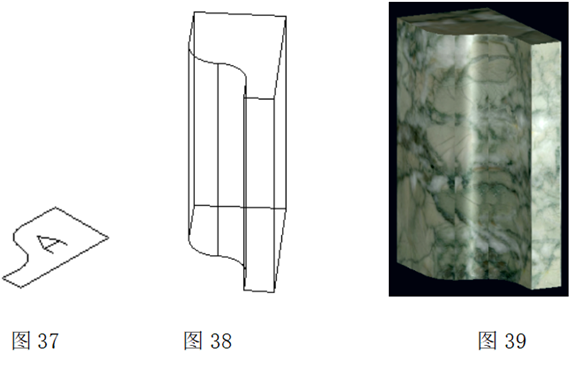 圖37為待拉伸的截面圖;圖38為截面A拉伸后形成的線條圖;圖39為貼材質(zhì)后的渲梁效果圖。