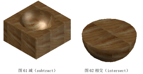 布爾運算是數(shù)學中的一個重要計算工具,對幾何體通過布爾計算可以形成各種各樣的物體。圖59~圖62是通過布爾運算中的加、減、相交運算得到的幾何構圖。