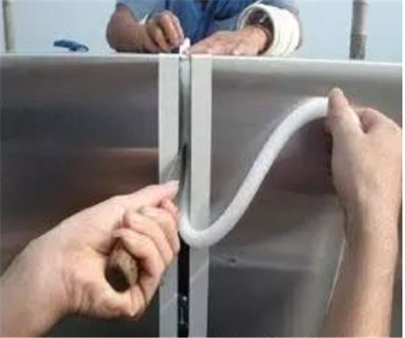 填補深度:以留1~2mm的縫隙深度為準,1mm為最佳。不能填滿,因為還有第三部分。操作時,把硅酮膠直接注入到泡沫條上方,注意觀察不要注滿即可。