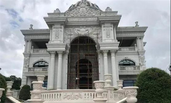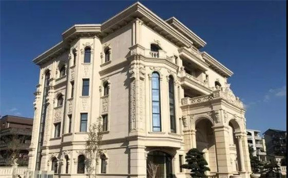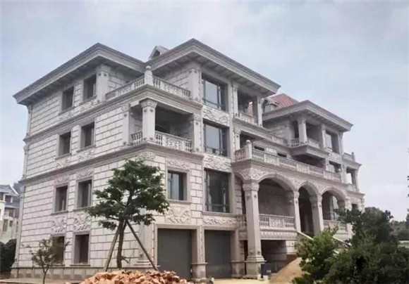 下面以黃金麻中黃荔枝面為例。平板規格板價格大概在兩百左右一平,以下分別列出樣板和最后別墅效果外觀。