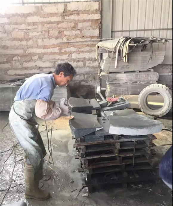 4、面處理,荔枝面一般是條板(短邊小于1米板)鑿,一塊需要約8-10分鐘。