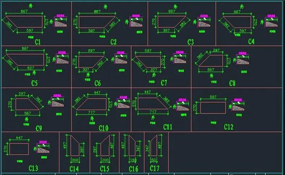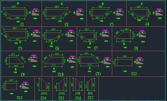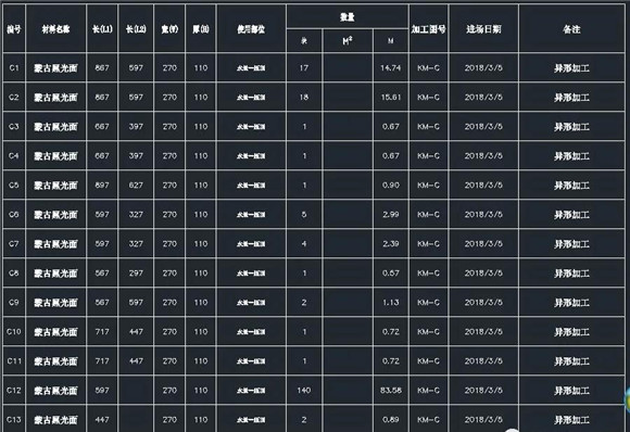 1)、分隔框:每一個加工圖要與其它的分隔開。加工圖要標明尺寸,編號,剖面等關鍵信息。異型加工的材料必須繪制平面、立面、剖面圖,并標明面層處理范圍。