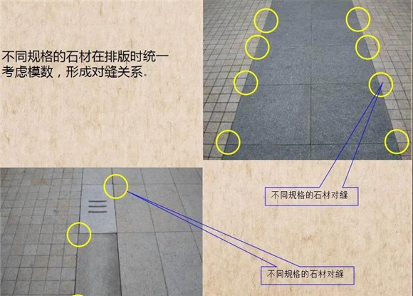 9、地面大面鋪裝不能使用光面,黃銹石、黃金麻慎用燒面,豐鎮黑不能使用荔枝面, 654、614最好用燒面等。