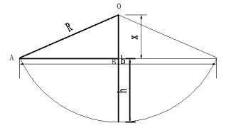 可以從圖10中用勾股定理求得。h=R-x,而x=