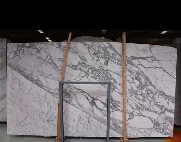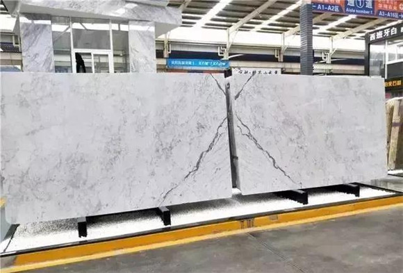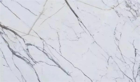 特點:板面色彩潔白,通體雪白、質感純凈底,且紋路分布或灰線縱貫板面,且紋路分布不均,光度極好,能達120度,雪花白由于質地細膩,光澤度高在云石中屬高檔品種。