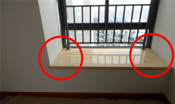 窗臺石(或下貼線條)與墻不得存在離縫,已便于墻面膩子收于陰角。