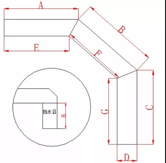 非標窗臺石面積=臺面石實際投影面積+下檔水沿面積