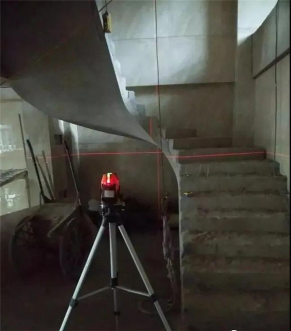 旋梯放樣需要測繪的數據主要是樓梯的平面尺寸及各部分的標高;根據放樣數據要能夠繪制出樓梯的土建及完成面的平面圖,還要能繪制出每個立面圖(包括樓梯攔河的內側與外側)。