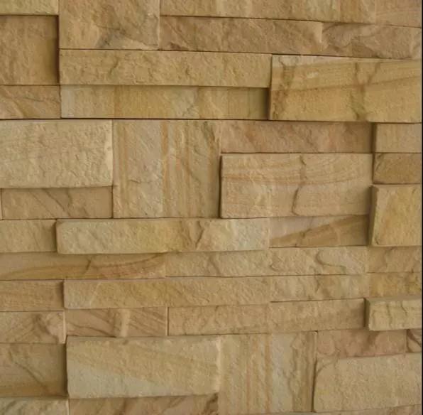 黃木紋天然板巖文化石,造型別致,錯落自然。先用鋸切開凹槽后,再手工劈鑿而成,相對于人造文化石更具有生動變化的形態,其厚度一般在2-4CM之間。用于內外墻體裝飾更顯一種流線美。