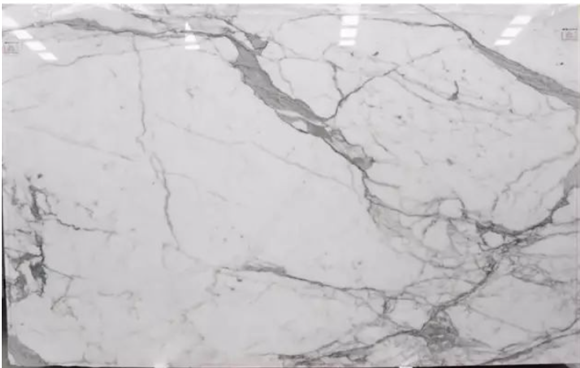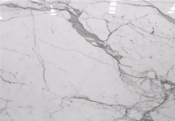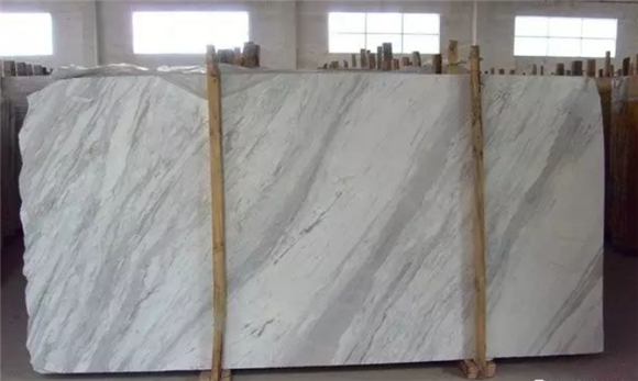 天然大理石;材料特征:底色白、紋路均勻。主要的問題是部分荒料的底色偏暗,及有紋路不均現象。總體來說還是比較穩定的。