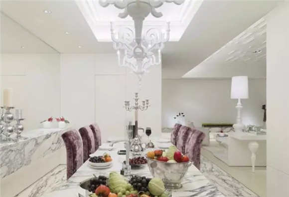 大理石。也稱之為玫瑰白。玫,石之美者,瑰,珠圓好者。冰川精靈這款大理石,它有著水晶般純凈透亮的白,又流著絲綢般細膩柔和的紅,質地靈透,白璧純華。難能可貴的是,燈光下,其透光性極佳,似霞虹天降,盡取天然。
