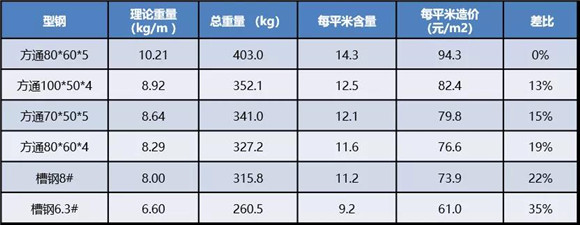 ①骨型材的選擇應在深化設計階段進行精確計算,通常相同受力情況下縱向龍骨中槽鋼較方通更為節省造價(約10%~15%)