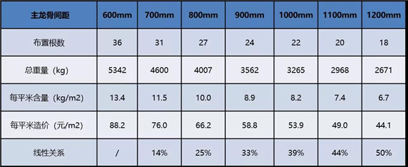 龍骨間距增大,每平米對應的連接件、螺栓使用量也相對減少