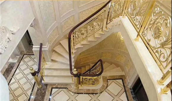 而大理石作為熱門的裝飾材料,在這些高檔的住宅里自然成為樓梯側(cè)墻板裝飾材料的佼佼者,其裝飾感十足,精致的腰線與踢腳線的設(shè)計(jì)應(yīng)用與側(cè)板鑲嵌,完美的體現(xiàn)出住宅的豪宅之風(fēng)!