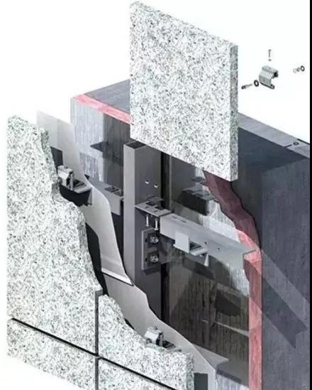 鋼銷式干掛工藝是利用高強螺栓和耐腐蝕、強度高的柔性連接件將薄型飾面板掛在建筑物結構的外表面,或型鋼骨架上,板材與結構表面之間留出一定的空腔。