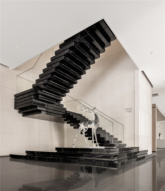 1、根據標高控制線,把樓梯每一梯段的所有踏步的誤差均分,并在墻面上放樣予以標識,作為檢查和控制板塊標高、位置標準。