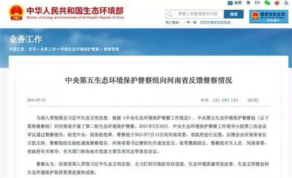 在收到中央環保督察組針對全省環境保護情況的反饋兩天后,河南省迅速開始了整治行動。