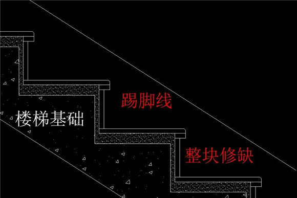 第四,踢腳線或者玻璃欄桿內側,做規格板現場修梯步缺口