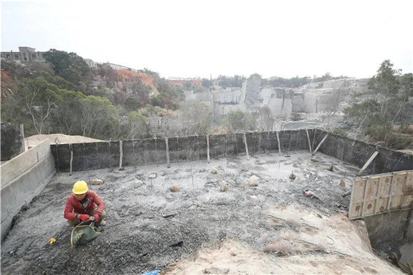 據介紹,目前施工的為礦坑秘境公園項目一期,項目一期將建設采石文化藝術走廊、觀景臺、休閑活動廣場、高空棧道、親水平臺等。項目一期建設預計2022年3月完成。