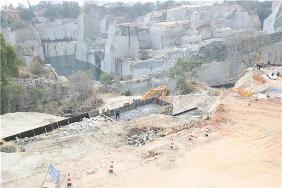 近年來,永和鎮在石窟生態修復方面不斷下功夫,多個小型石窟“搖身一變”,成綠地或口袋公園,成了人們的休閑去處。生態修復卓有成效,也讓永和鎮有了一個更“大膽”的設想,將巴厝這處險峻的大石窟改造成秘境公園。如今,石窟場外的大門已為施工隊打開。
