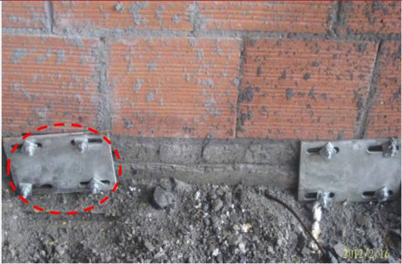 整改措施:埋板應(yīng)固定在混凝土結(jié)構(gòu)上,如無法滿足須采用穿墻螺栓固定在磚墻上。