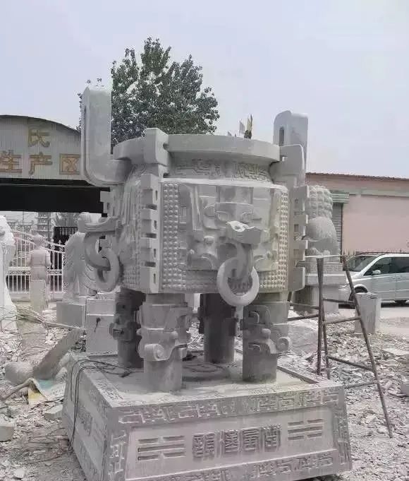 以天然石頭精心雕刻的大鼎,沉重而莊嚴(yán),表面更是有神秘的石像圖騰,讓觀者止不住被它厚重的歷史氛圍所包裹。