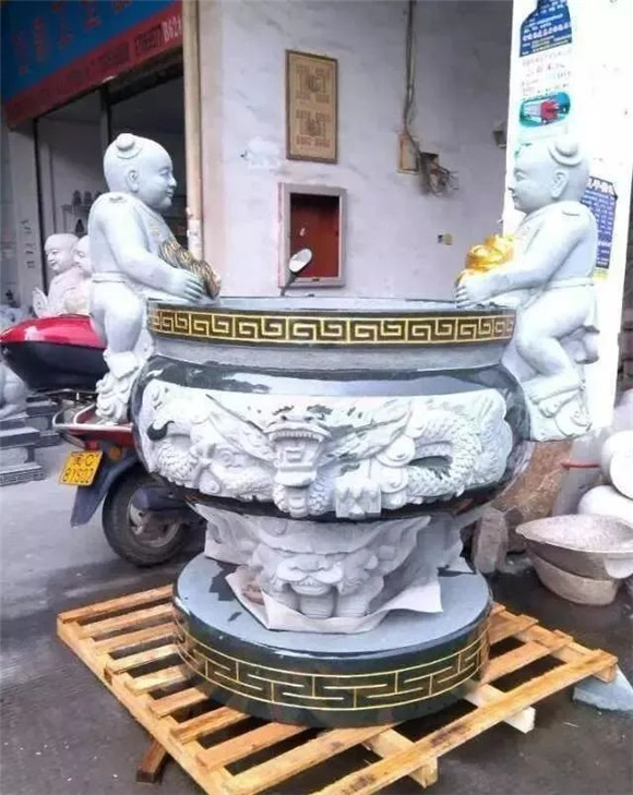 石雕鼎因其價(jià)格、雕刻和不怕風(fēng)吹日曬等優(yōu)勢(shì)成為現(xiàn)代最常用最實(shí)用的工藝品。石鼎的制作看似容易,但要做好它卻讓師傅極費(fèi)心思。石鼎的外形都大同小異,表面上僅是或方或圓,三足四足加上兩耳那樣,看起來(lái)十分的簡(jiǎn)單,但最主要的區(qū)別卻在于其表身的圖案雕刻技巧。
