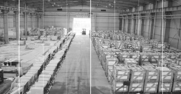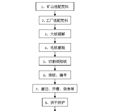 通過荒料兩次選配、光板一次選配、規(guī)格板排版編號四次嚴(yán)格選配來控制色差。