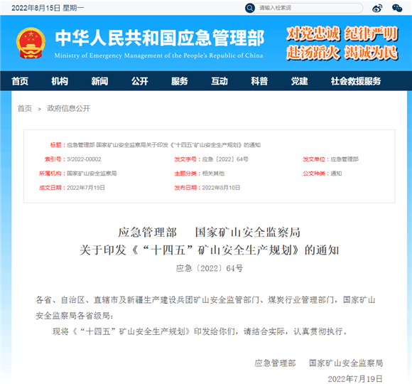 關(guān)于印發(fā)《“十四五”礦山安全生產(chǎn)規(guī)劃》的通知