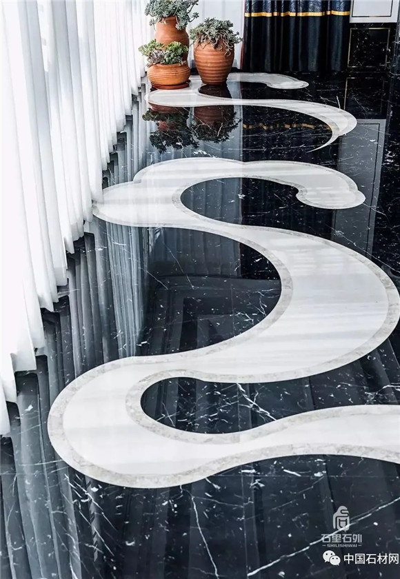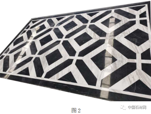 石材http://www.stonebuy.com/設(shè)計(jì)做拼花是個(gè)很令人煩惱的事情。大理石裂紋多,象西班牙米黃、舊米黃、爵士白、金蜘蛛、紫羅紅、黑白根等材料。如果設(shè)計(jì)這些材料做拼花的話,不僅拼花生產(chǎn)加工時(shí)很麻煩,加工過程中拼件斷裂嚴(yán)重,加工費(fèi)時(shí)費(fèi)力,加工出來的拼花質(zhì)量由于表面裂紋效果不好。圖2拼花是2019年筆者管理的工廠接手加工的喀中港項(xiàng)目工程的一套拼花,拼花就是兩種材料加工。一種材料是黑白根,一種材料是爵士白,兩種材料都是裂紋較多的材料。加工時(shí)水刀機(jī)切割好后就出現(xiàn)斷裂。一套不到10平方的拼花加工4天時(shí)間,而且加工出來拼花質(zhì)量表面裂紋處理的質(zhì)量并不理想。
