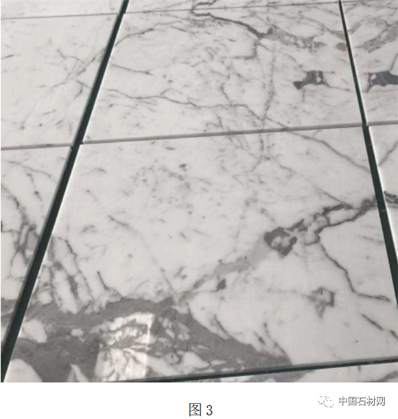 出口http://en.stonebuy.com/到喀麥隆的拼花。兩個(gè)工程拼花加工出來后都再現(xiàn)了爵士白表面有大量裂紋和玻璃斑的現(xiàn)象。