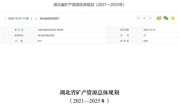 《湖北省礦產資源總體規劃(2021-2025年)》正式印發(圖源:湖北省自然資源廳官網)