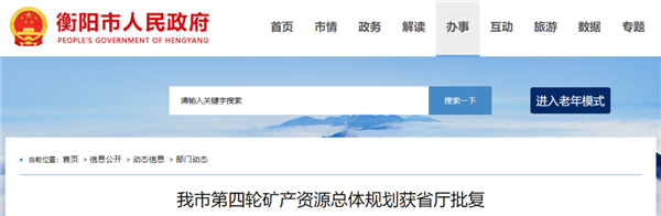 近日,湖南省自然資源廳向衡陽市人民政府下發《關于衡陽市礦產資源總體規劃(2021-2025年)的復函》,標志衡陽市第四輪礦產資源總體規劃完成審查和批復。本輪礦規共規劃一、二類礦種勘查區塊44個、開采區塊152個,規劃普通建筑材料用砂石土礦開采區塊128個。新設建筑用石料礦山最低開采規模不低于50萬噸/年,已設礦山不低于30萬噸/年,大中型礦山占比達到30%以上。