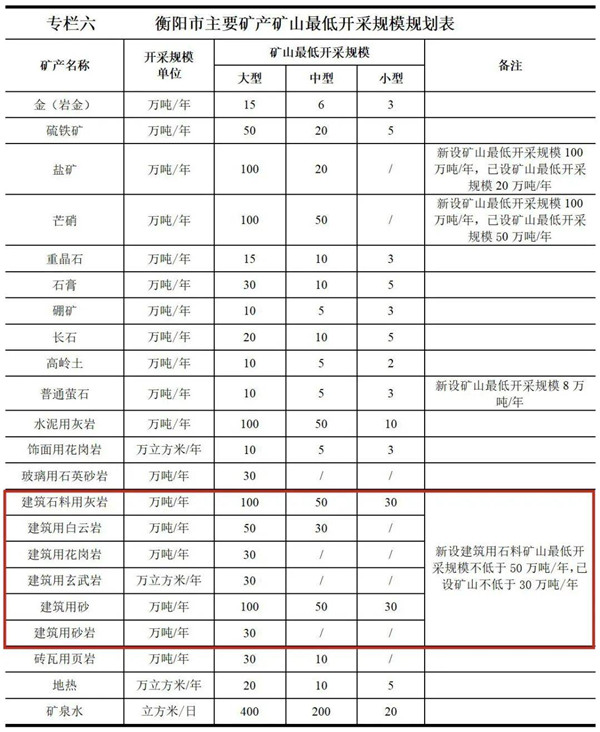 以原湖南省國土資源廳與湖南省安全生產監督管理局聯合下發的《關于加強礦產資源開發管理促進安全生產有關問題的通知》(湘國土資發﹝2015﹞28號)文件要求和《湖南省礦產資源總體規劃(2021~2025年)》為基礎,根據衡陽市礦產資源的特點和當前礦山開發情況而確定(專欄六)。